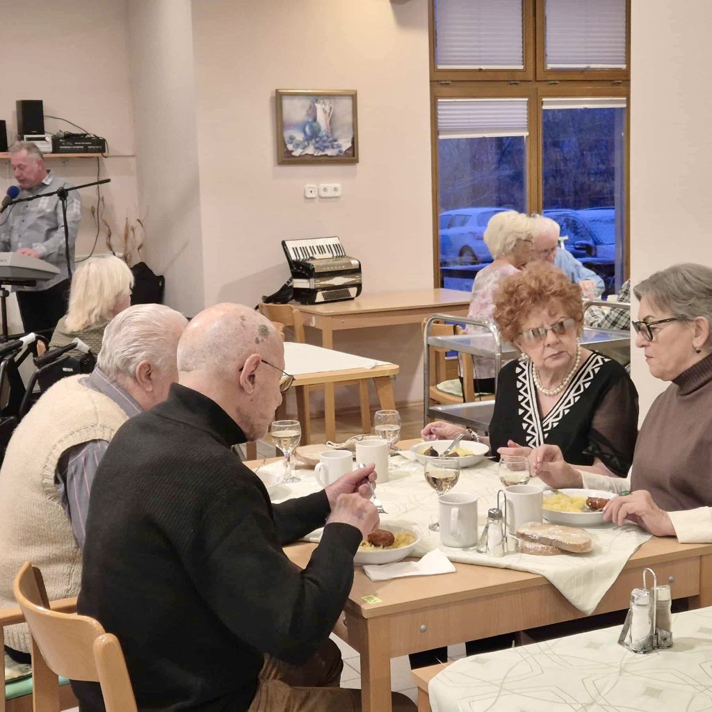 A program részeként lakóink és kollégáink vidám kabaréval is készültek, a vacsorát pedig élő zeneszó mellett fogyaszthatták el, ami tovább emelte az est hangulatát.